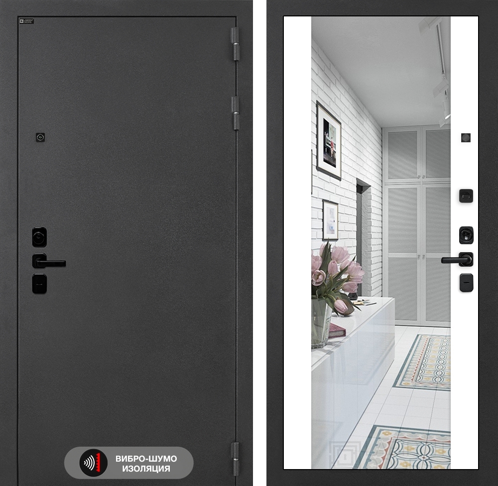Входная стальная дверь Лабиринт ACUSTIC с Зеркалом Максимум - Белый софт