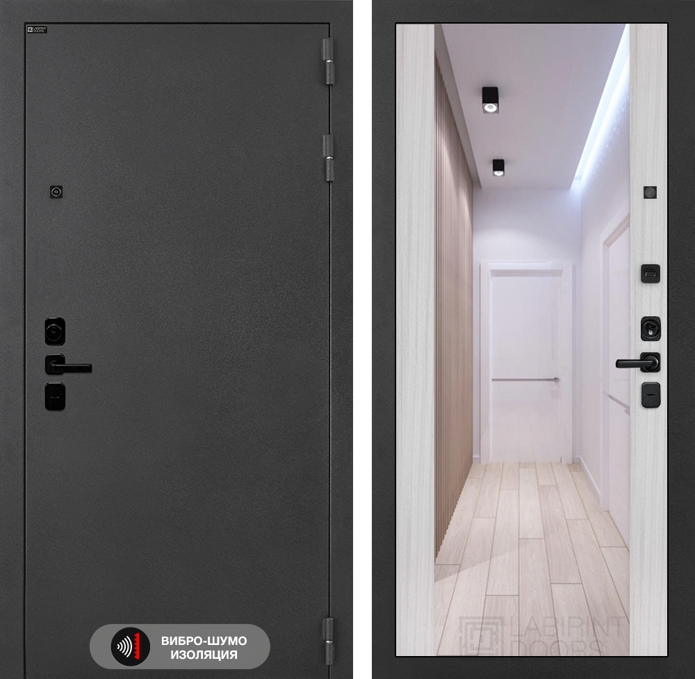 Входная стальная дверь Лабиринт ACUSTIC с Зеркалом Максимум - Сандал белый