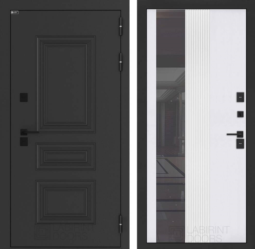 Входные двери Аляска лайт с терморазрывом с Зеркалом 32 тонированным - Белый рельеф софт