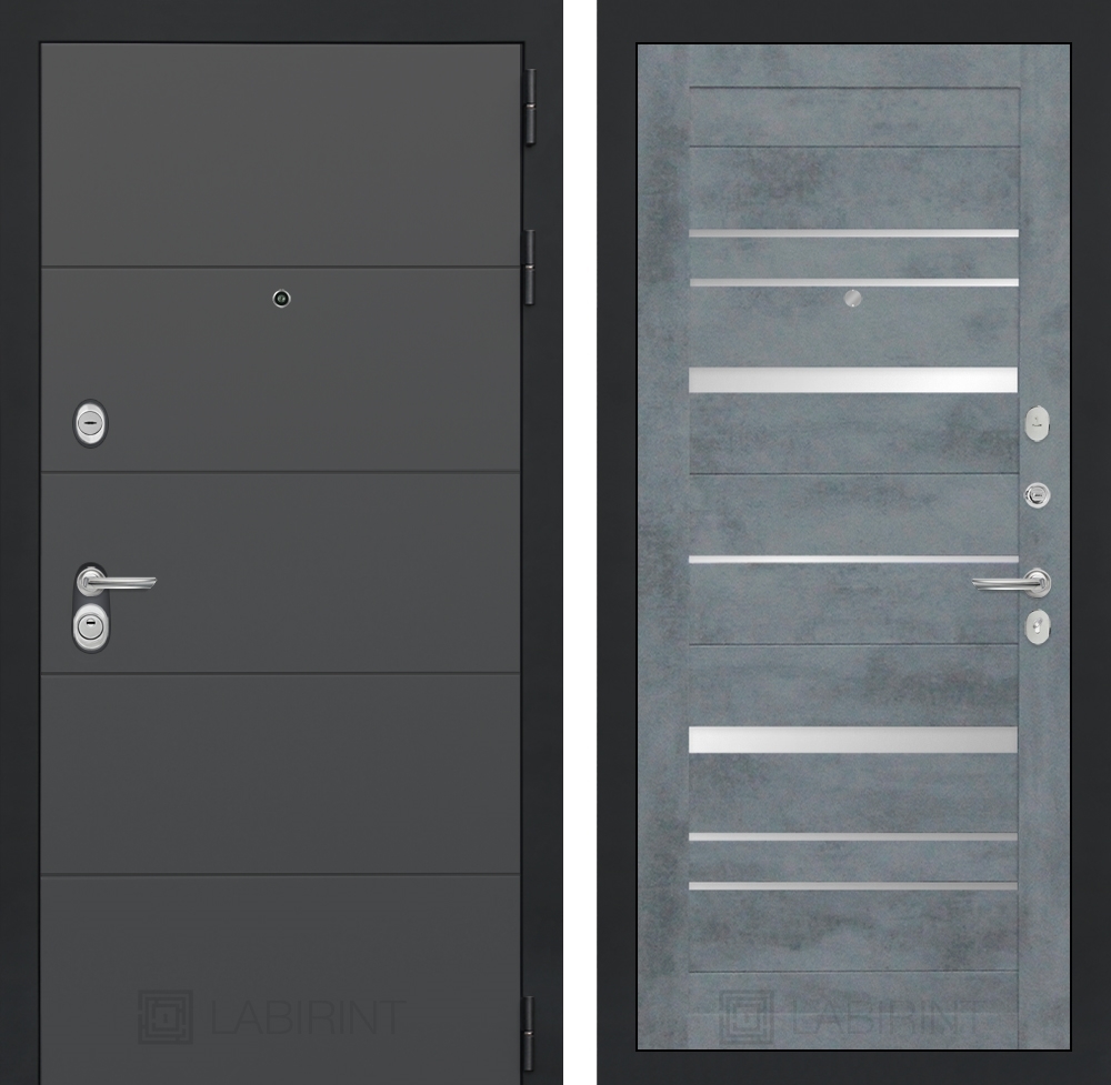 Входная стальная дверь Лабиринт ART 20 - Бетон темный, зеркальные вставки