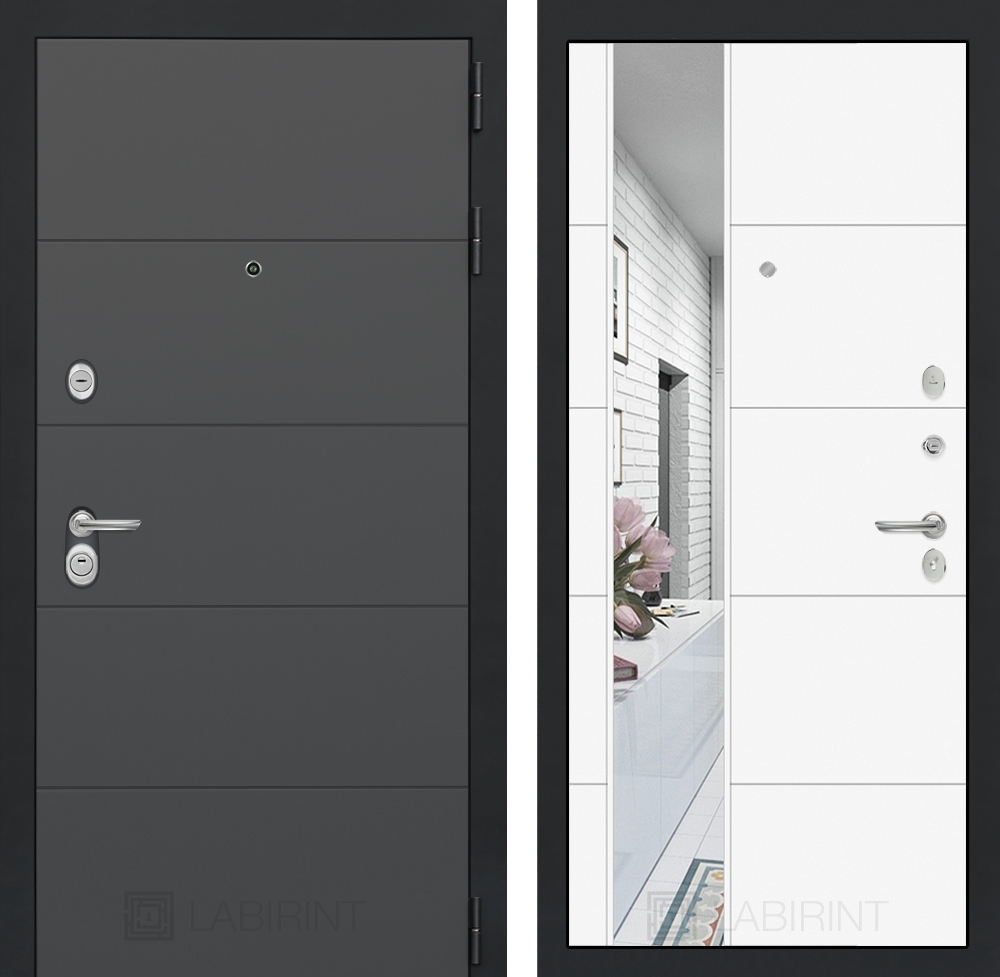 Входная стальная дверь Лабиринт ART графит с Зеркалом 19 - Белый софт