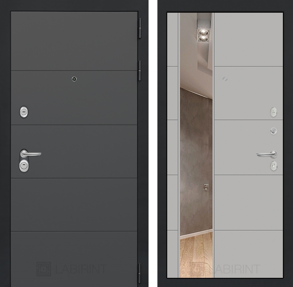 Входная стальная дверь Лабиринт ART графит с Зеркалом 19 - Грей софт
