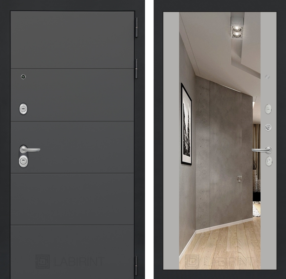 Входная стальная дверь Лабиринт ART графит с Зеркалом Максимум - Грей софт