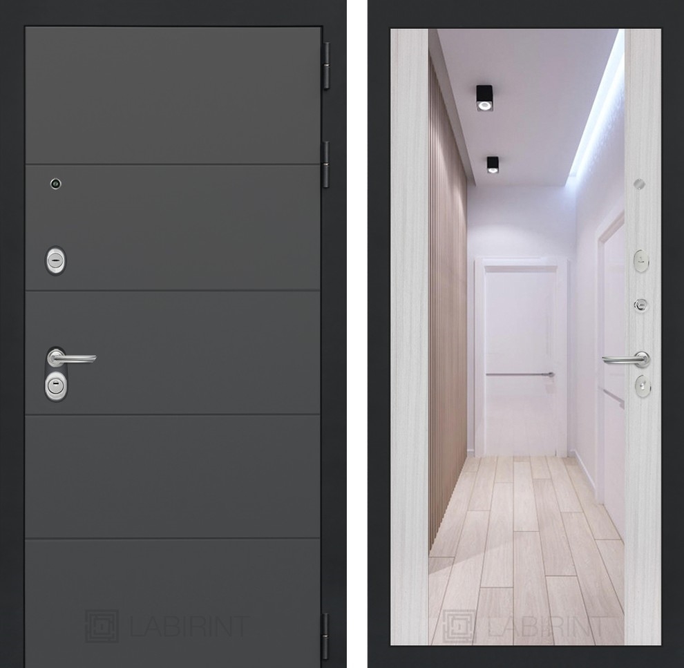 Входная стальная дверь Лабиринт ART графит с Зеркалом Максимум - Сандал белый