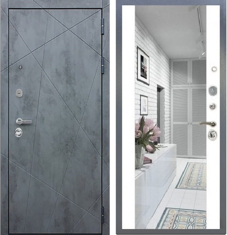 Входная дверь АСД Дуэт Б с Зеркалом СБ-16 Белый силк сноу