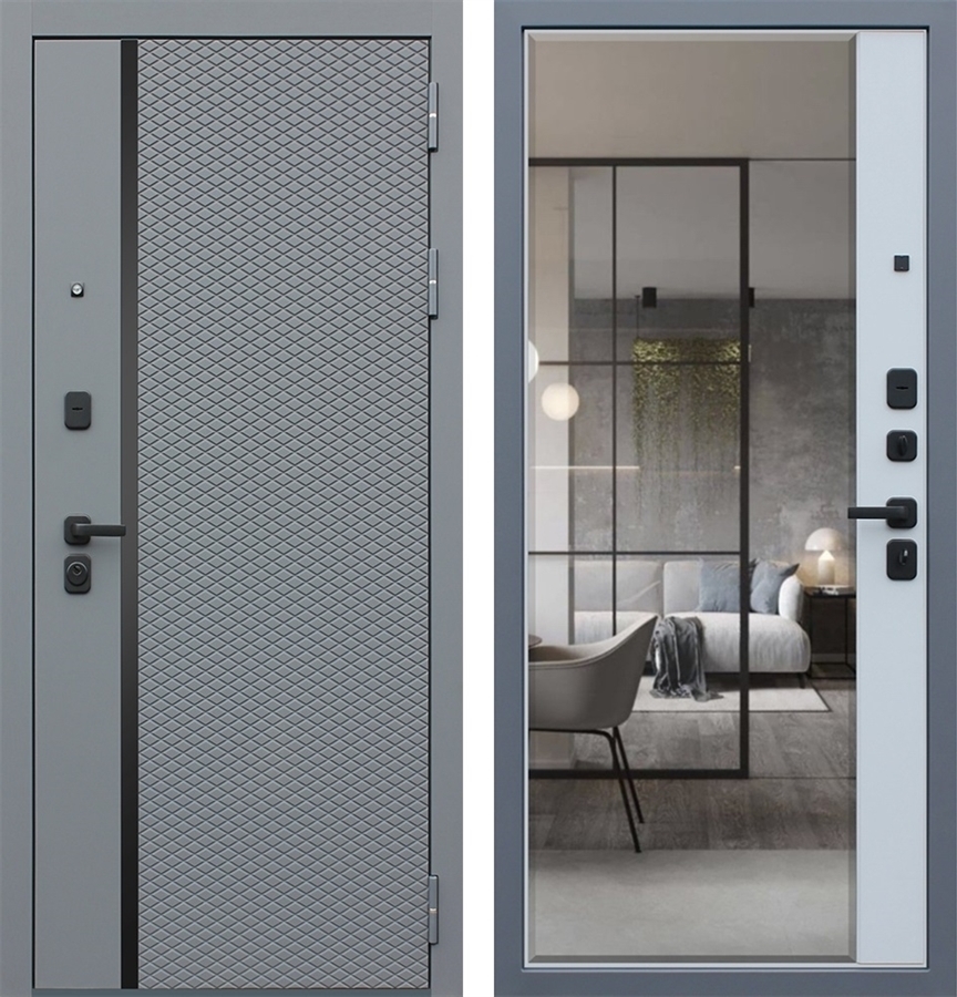 Входная стальная дверь АСД Манчестер с Зеркалом Лайт софт грей