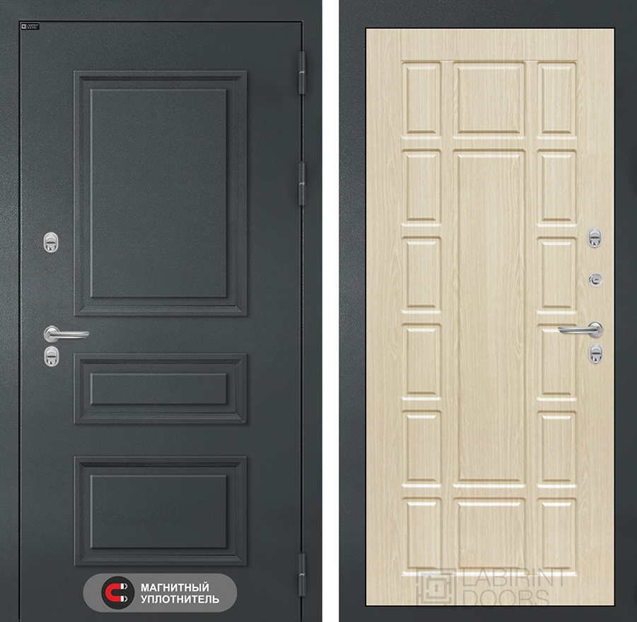 - Отделка снаружи: Металлическая отделка 3D филенка с 2-х слойным покрытием. 1 слой - цинкосодержащий грунт, 2 слой - покраска.