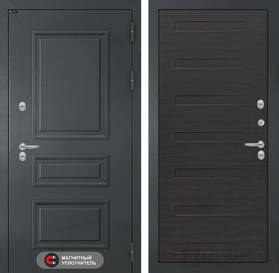 - Отделка снаружи: Металлическая отделка 3D филенка с 2-х слойным покрытием. 1 слой - цинкосодержащий грунт, 2 слой - покраска.