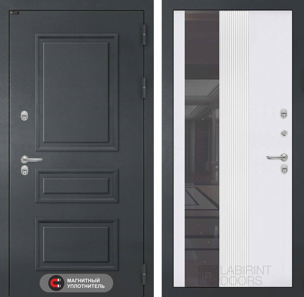 Входная дверь Атлантик с Зеркалом 32 тонированным - Белый рельеф софт