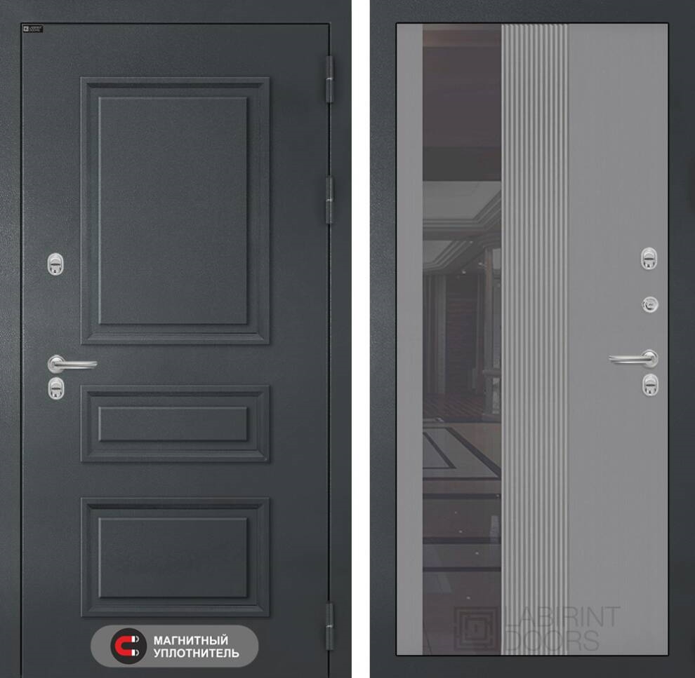 Входная дверь Атлантик с Зеркалом 32 тонированным - Серый рельеф софт