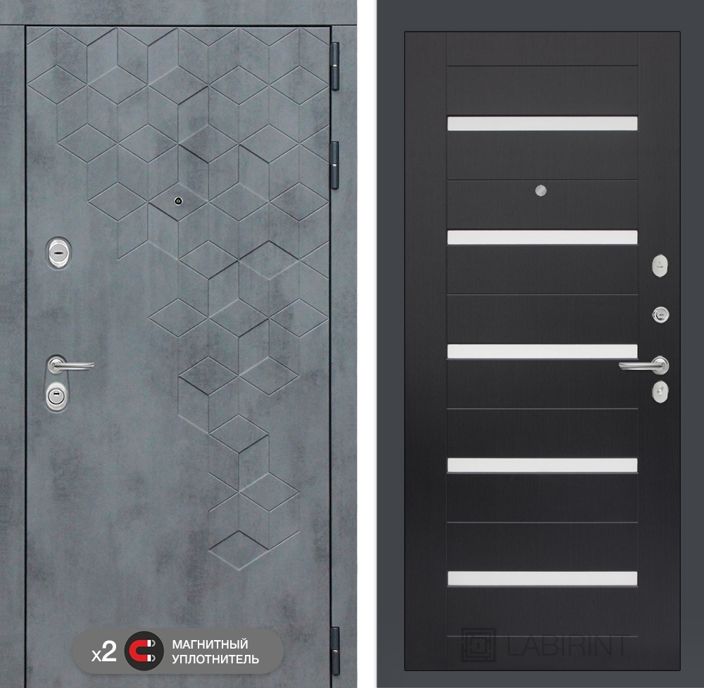 Входная стальная дверь Лабиринт Бетон 01 - Венге, стекло белое