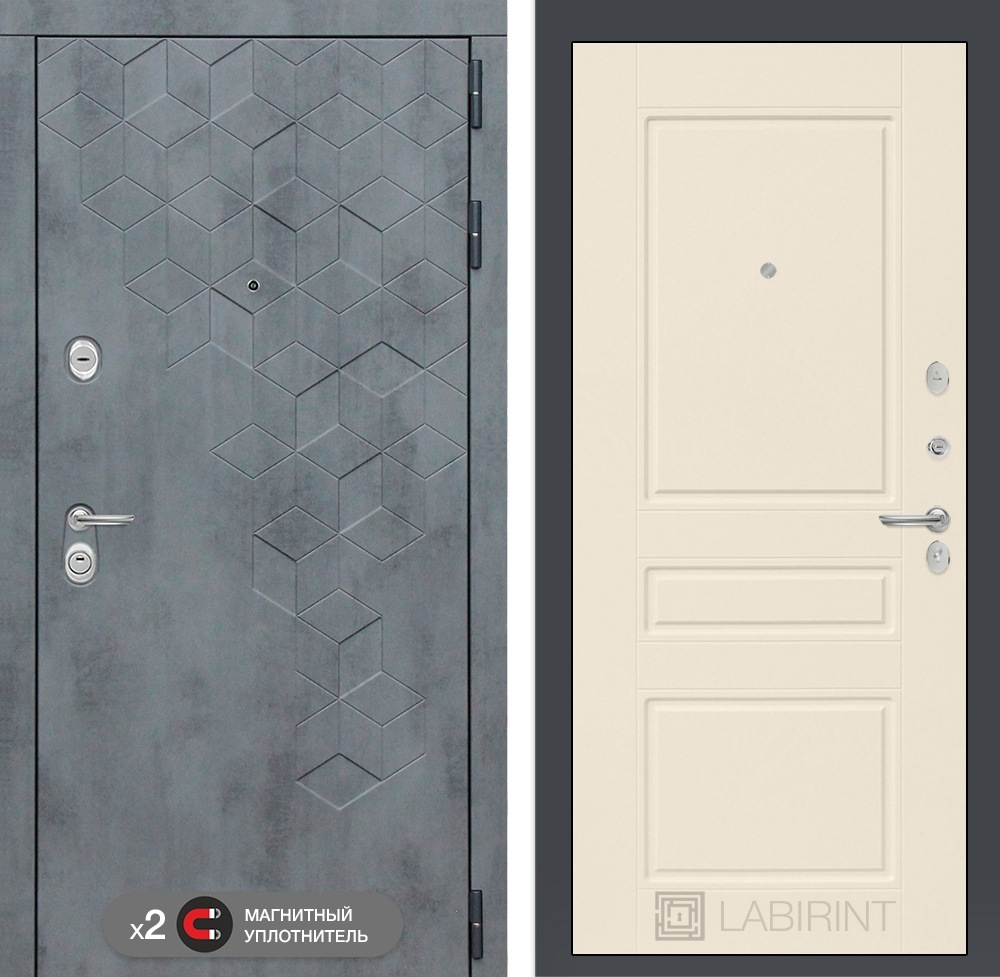 Входная стальная дверь Лабиринт Бетон 03 - Крем софт