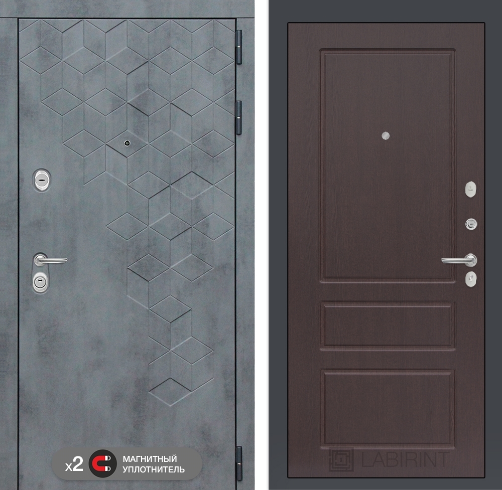 Входная стальная дверь Лабиринт Бетон 03 - Орех премиум