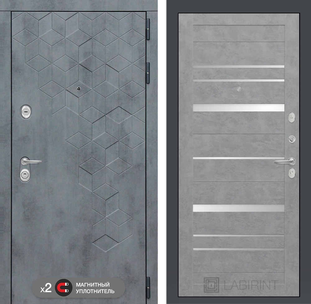 Входная стальная дверь Лабиринт Бетон 20 - Бетон светлый, зеркальные вставки