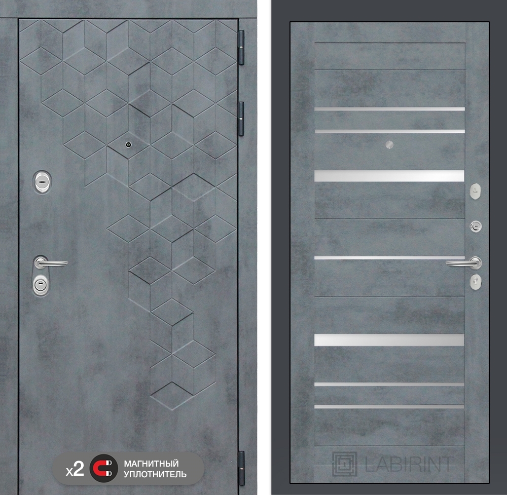 Входная стальная дверь Лабиринт Бетон 20 - Бетон темный, зеркальные вставки