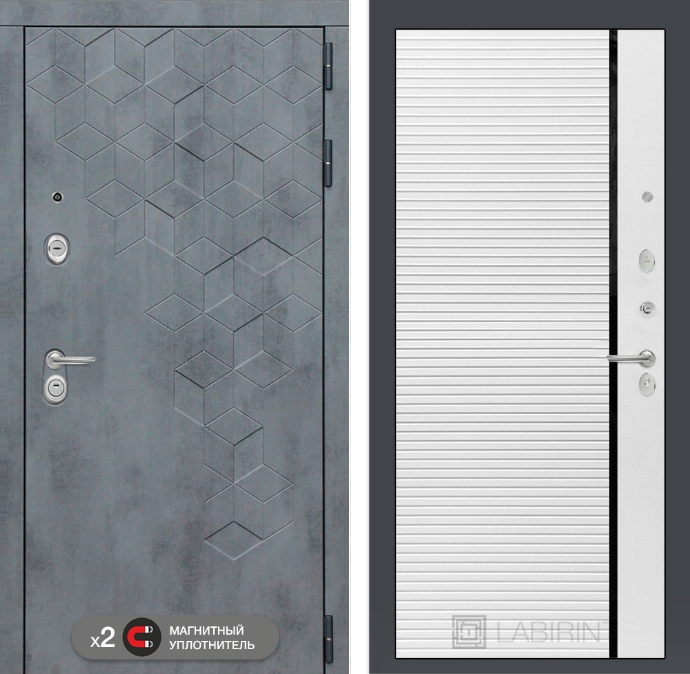 Входная стальная дверь Лабиринт Бетон 22 - Белый софт, черная вставка
