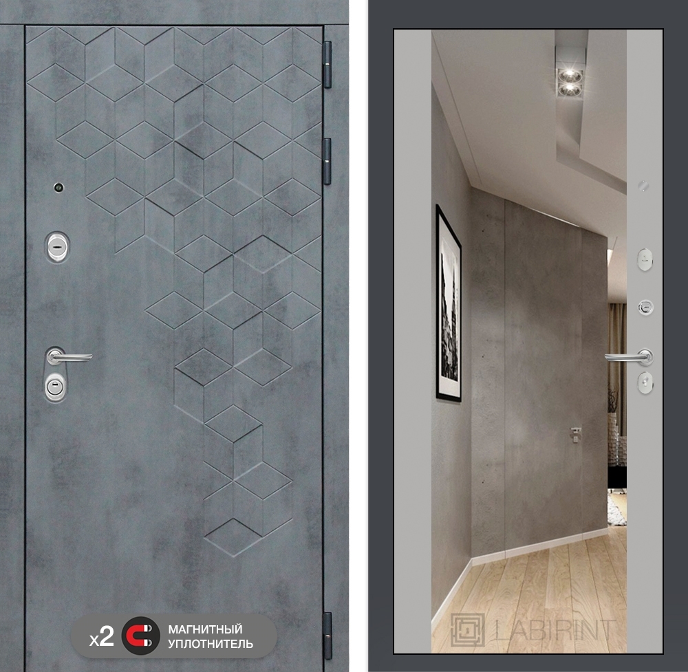 Входная стальная дверь Лабиринт Бетон с зеркалом Максимум - Софт Грей
