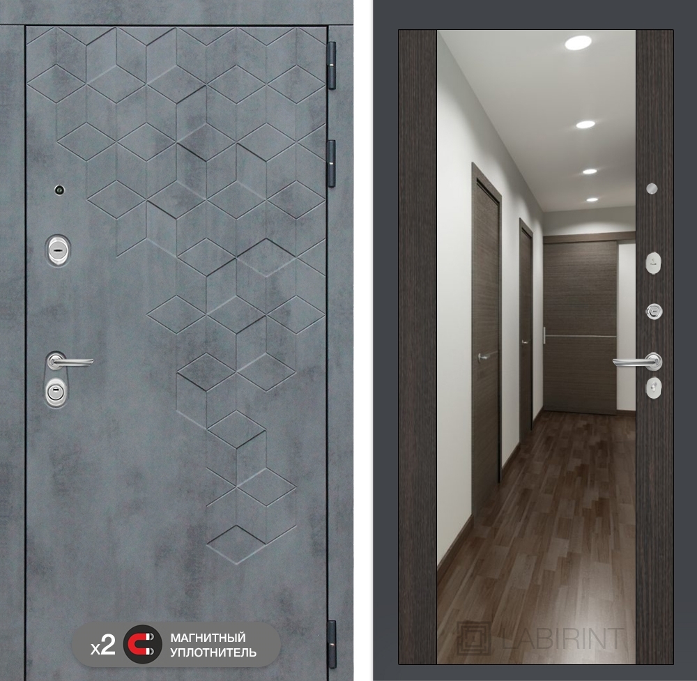 Входная стальная дверь Лабиринт Бетон с зеркалом Максимум - Венге