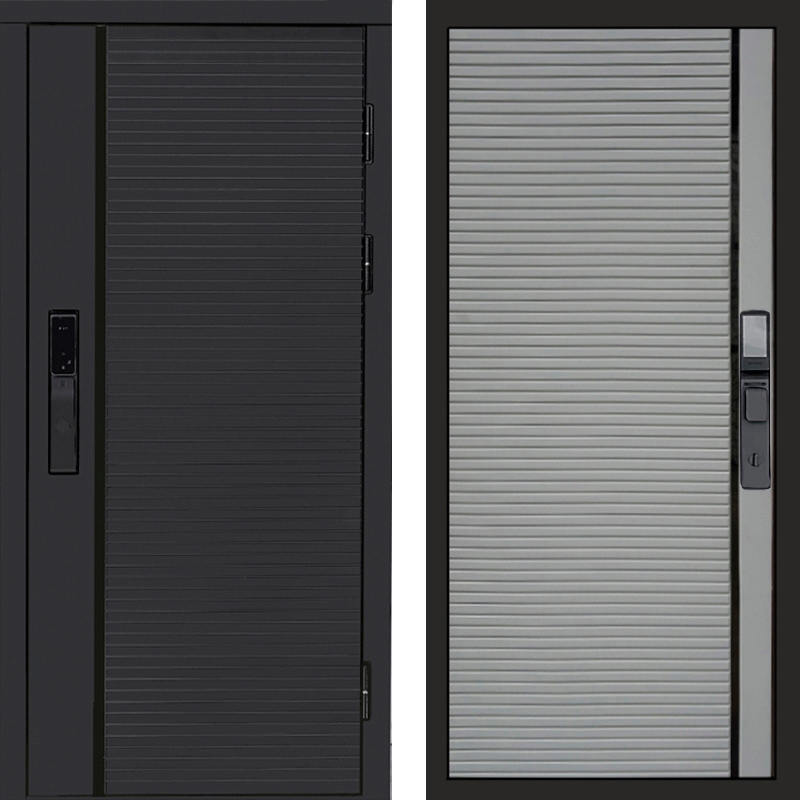 Входная стальная дверь Black Line Porte Грей софт, черная вставка