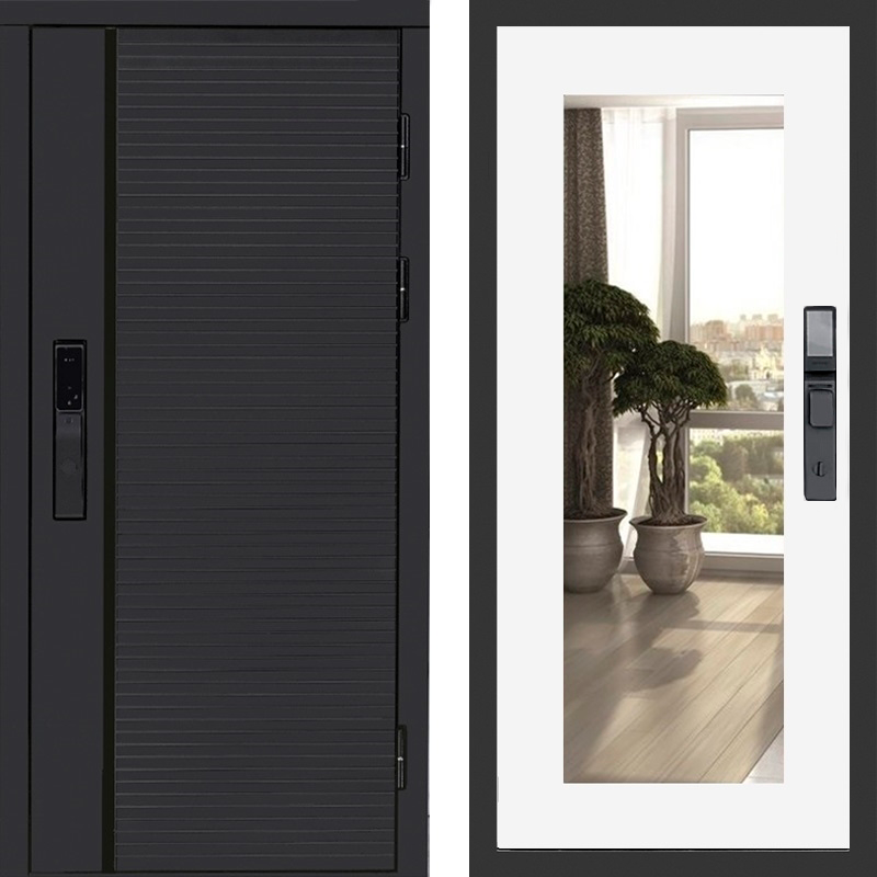 Входная стальная дверь Black Line Триумф с зеркалом Белый софт