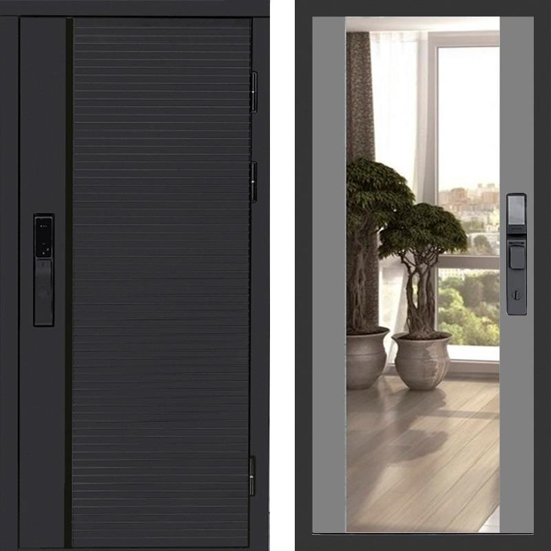 Входная стальная дверь Black Line Макси с зеркалом Грей софт