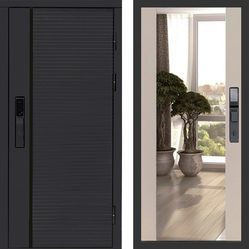 Входная стальная дверь Black Line Макси с зеркалом Слоновая кость