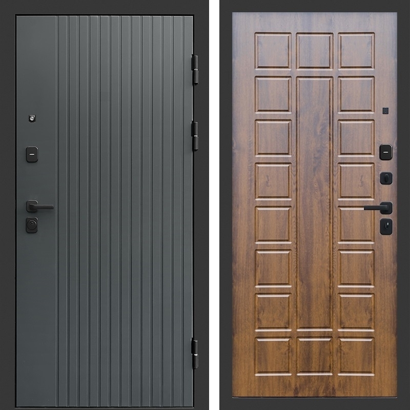 - В комплект двери входит - Полотно + короб, декоративная панель с двух сторон, 2 - замка, ручки, декоративные накладки.