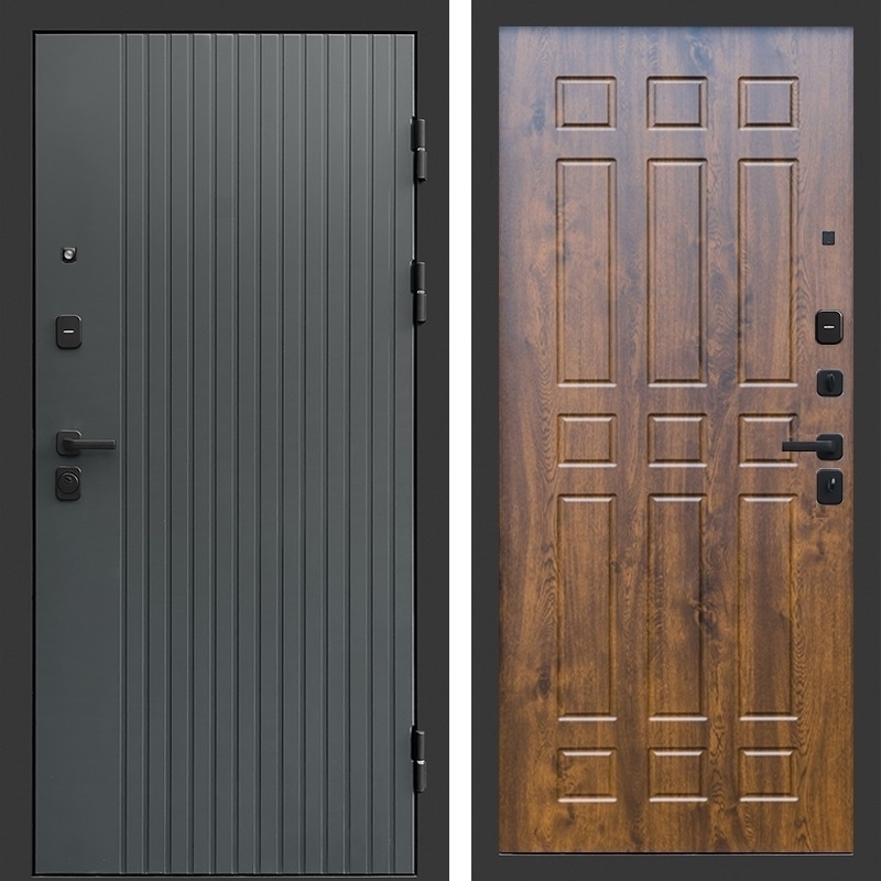 - В комплект двери входит - Полотно + короб, декоративная панель с двух сторон, 2 - замка, ручки, декоративные накладки.