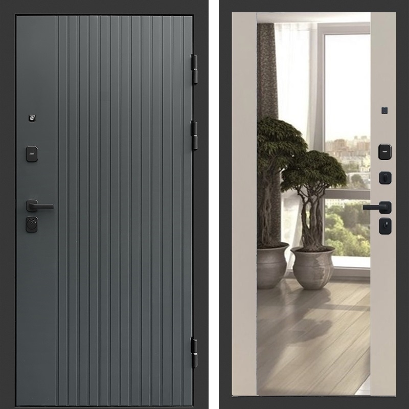 Входная стальная дверь Гермес фл-252 с зеркалом Слоновая кость