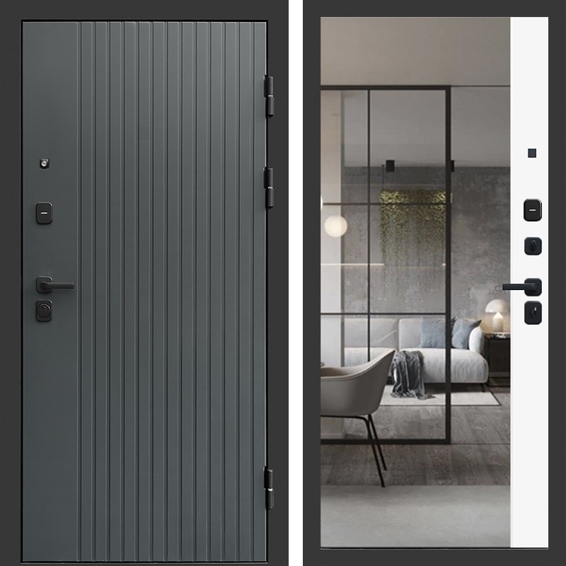 Входная дверь Гермес с зеркалом фацет Белый софт