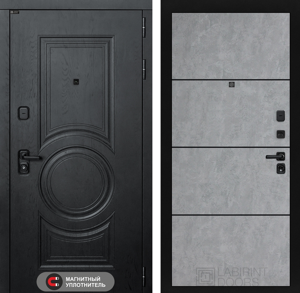 Входная стальная дверь Лабиринт GRAND 25 - Бетон светлый, черный молдинг