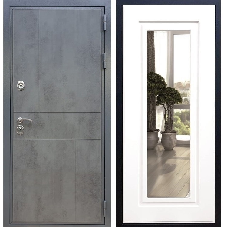 Входная стальная дверь Гранит Бетон ФЛ-120 с Зеркалом Белый силк сноу