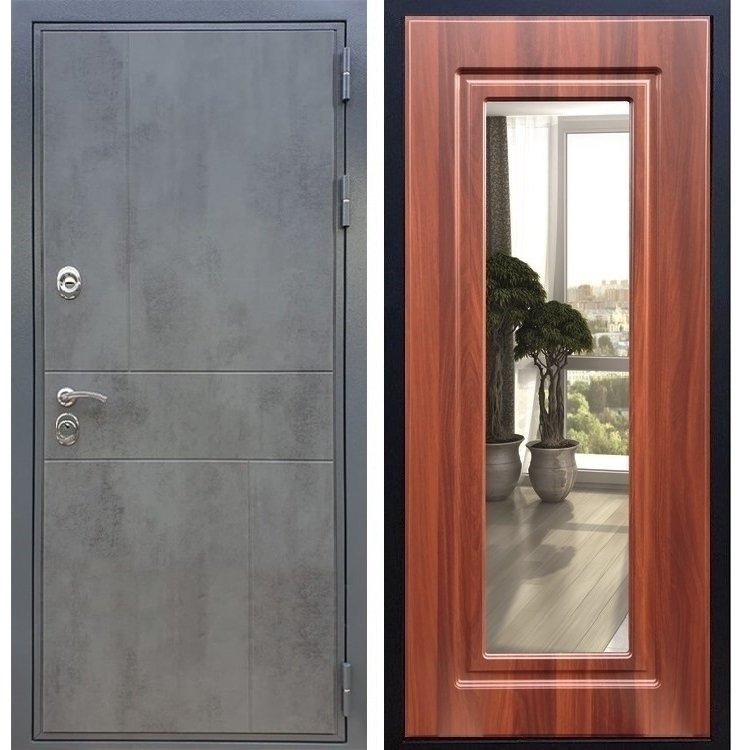 Входная стальная дверь Гранит Бетон ФЛ-120 с Зеркалом Берёза морёная