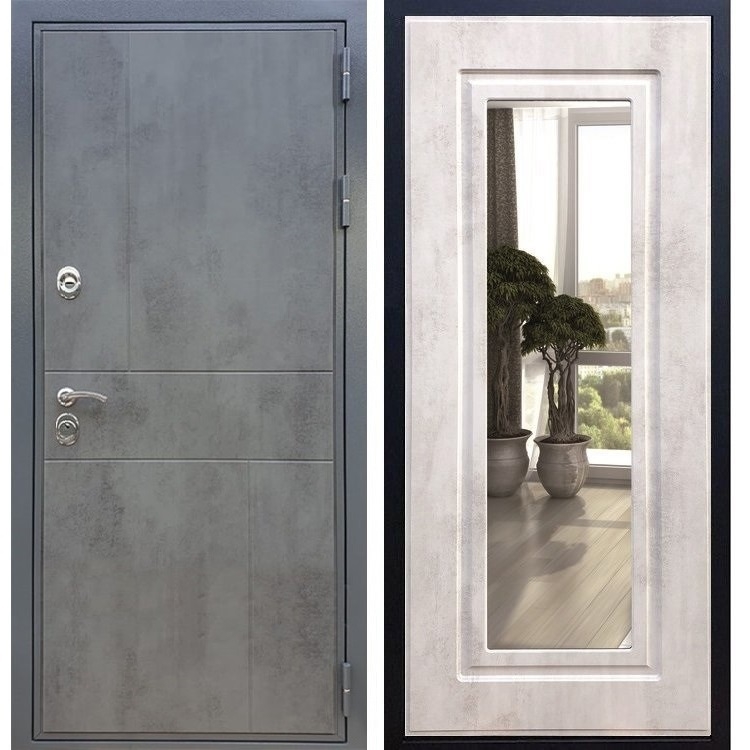 Входная стальная дверь Гранит Бетон ФЛ-120 с Зеркалом Бетон светлый