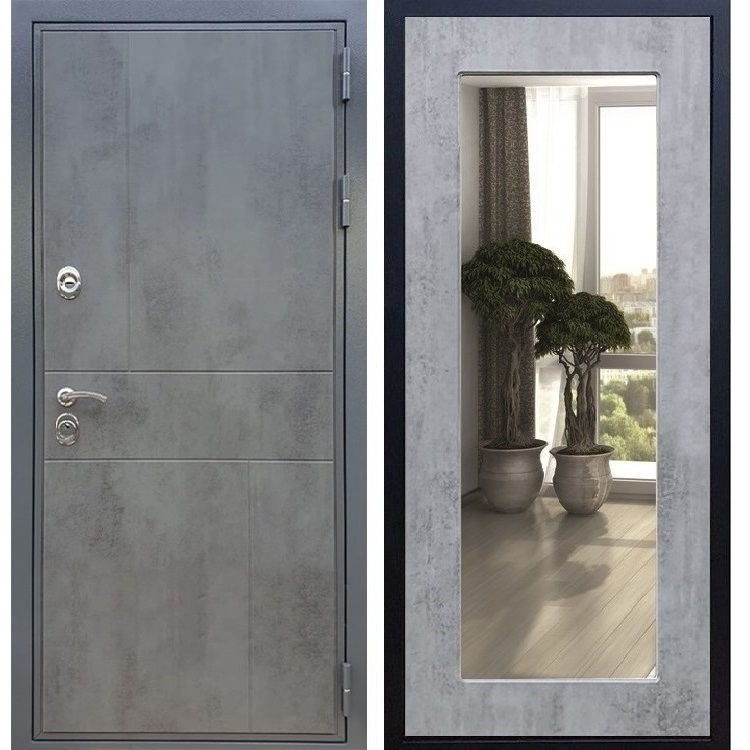 Входная стальная дверь Гранит Бетон Пастораль Бетон тёмный с Зеркалом