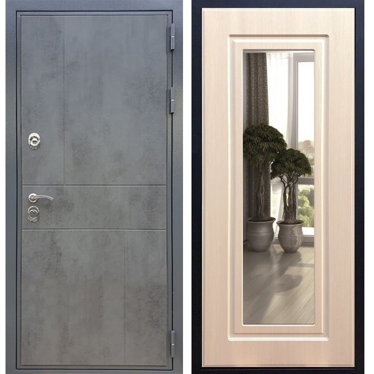 Входная стальная дверь Гранит Бетон с Зеркалом Беленый дуб