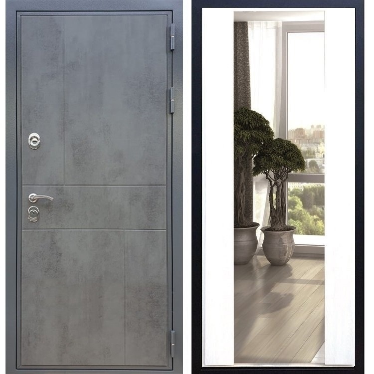 Входная стальная дверь Гранит Бетон с Зеркалом СБ -16 Белый силк сноу