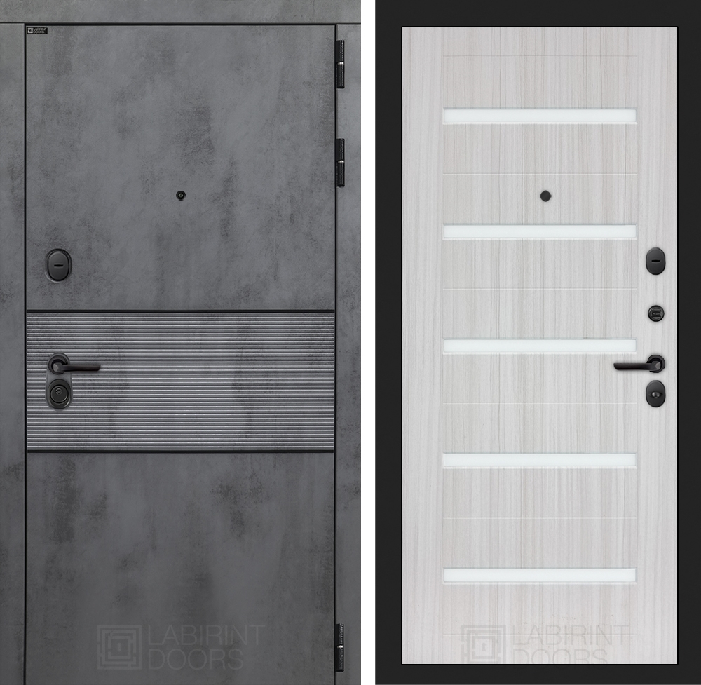 Входная стальная дверь Лабиринт INFINITY 01 - Сандал белый, стекло белое
