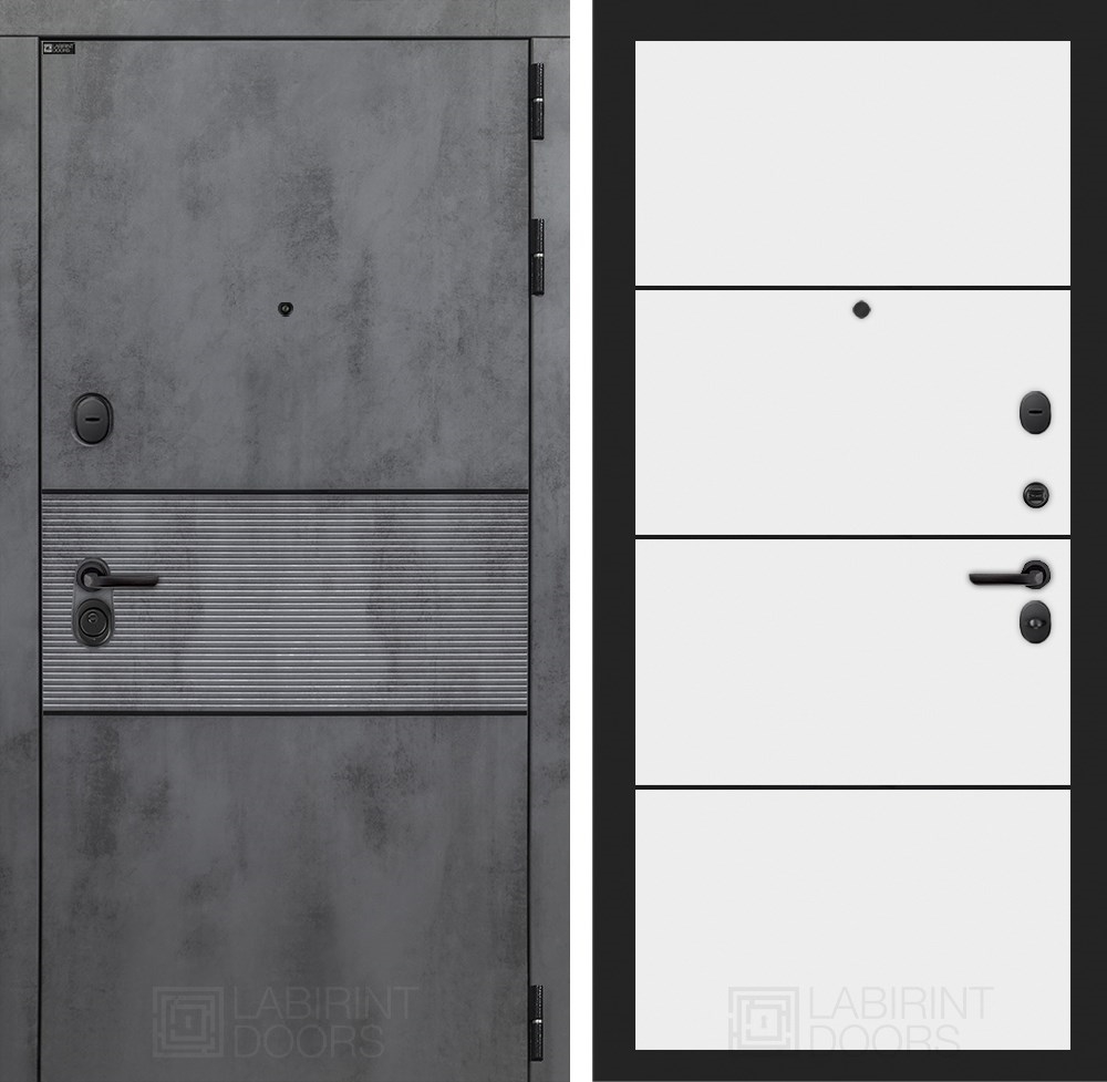 Входная стальная дверь Лабиринт INFINITY 25 - Белый софт, черный молдинг