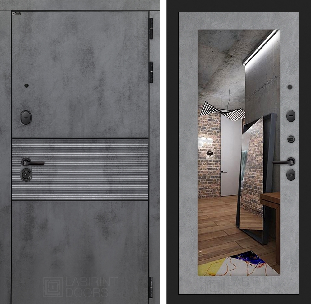 Входная стальная дверь Лабиринт INFINITY с Зеркалом 18 - Бетон светлый