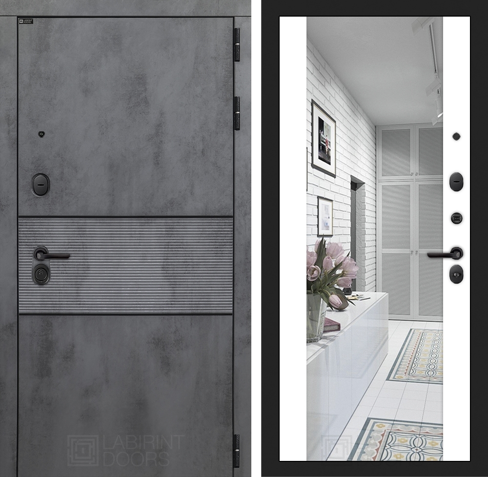 Входная стальная дверь Лабиринт INFINITY с Зеркалом Максимум - Белый софт