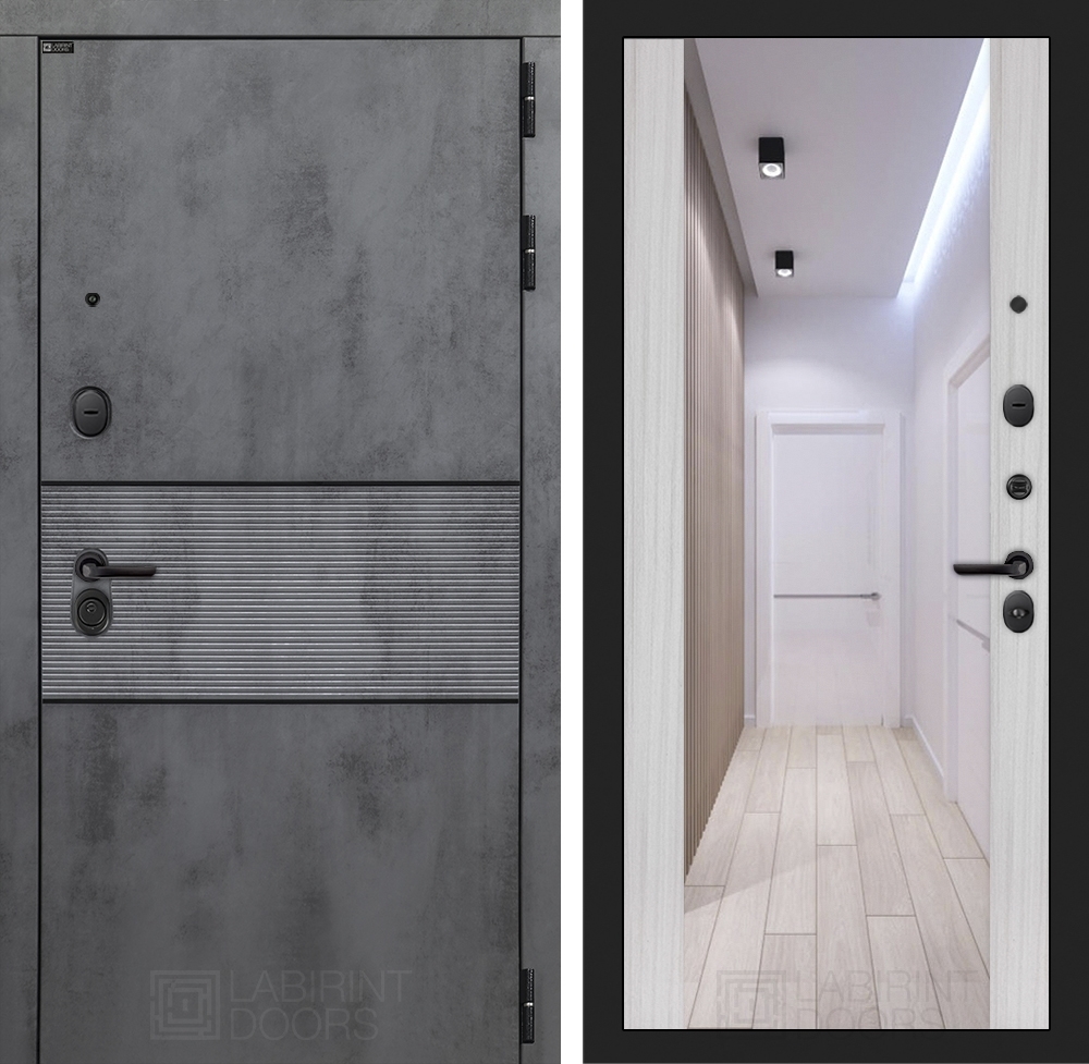 Входная стальная дверь Лабиринт INFINITY с Зеркалом Максимум - Сандал белый