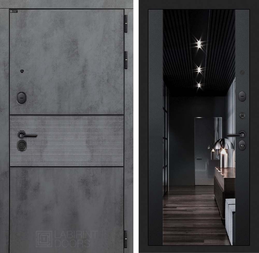 Входная стальная дверь Лабиринт INFINITY с Зеркалом тонированным Максимум - Черный кварц