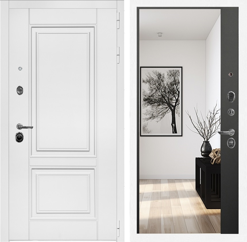 Входная дверь Интеко Афина Белая Черный кварц - с зеркалом панорама
