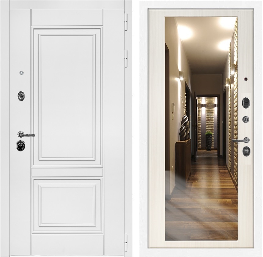Входная дверь Интеко Афина Белая Сандал белый - с зеркалом