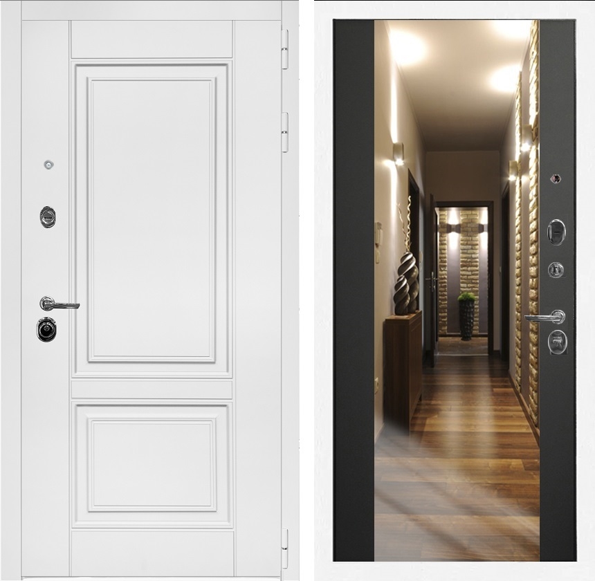 Входная дверь Интеко Афина Белая сб-16 Венге - с зеркалом