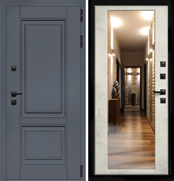 Входная дверь Интеко Афина Графит Бетон светлый - с зеркалом