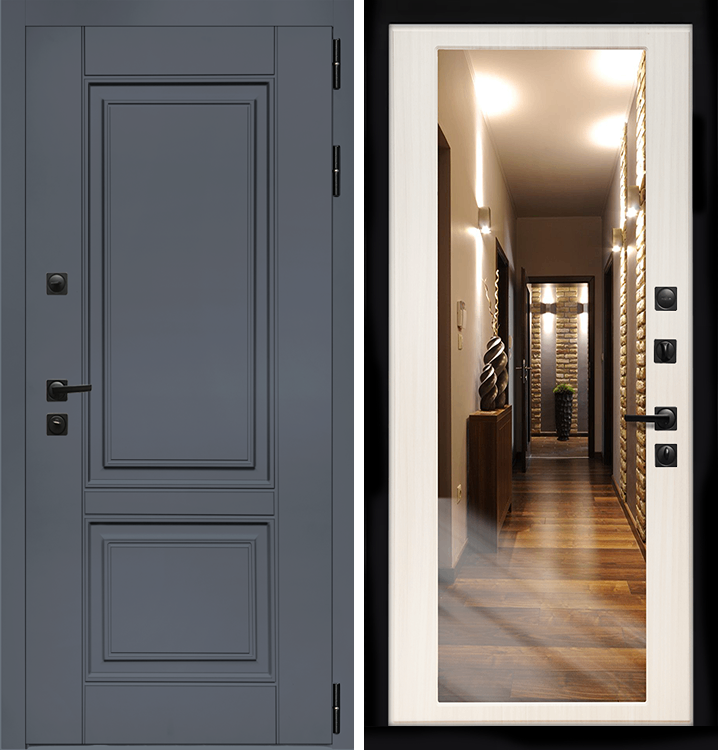 Входная дверь Интеко Афина Графит Сандал белый - с зеркалом