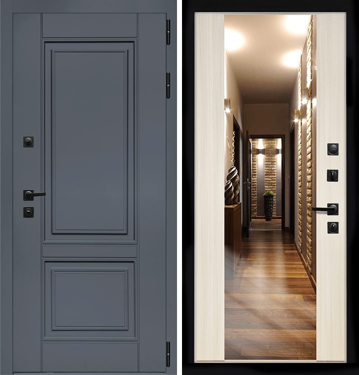 Входная дверь Интеко Афина Графит сб-16 Сандал белый - с зеркалом