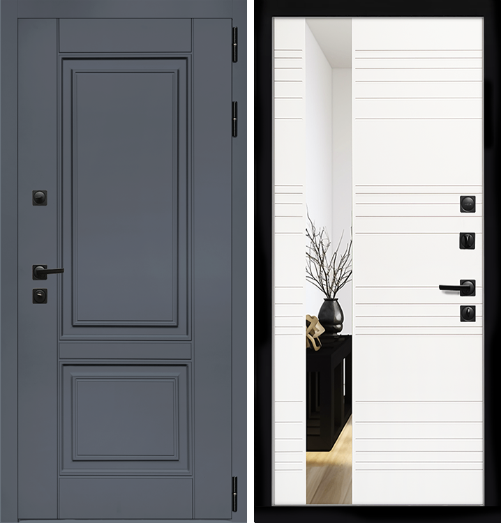 Входная дверь Интеко Афина Графит Сити Белый мат - с зеркалом